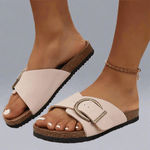 Il sandalo ALDA si distingue per la sua fascia larga con fibbia decorativa oversize, perfetto per un look semplice ma deciso. La suola leggermente sagomata offre comfort per tutto il giorno, ideale per le giornate calde e dinamiche.
